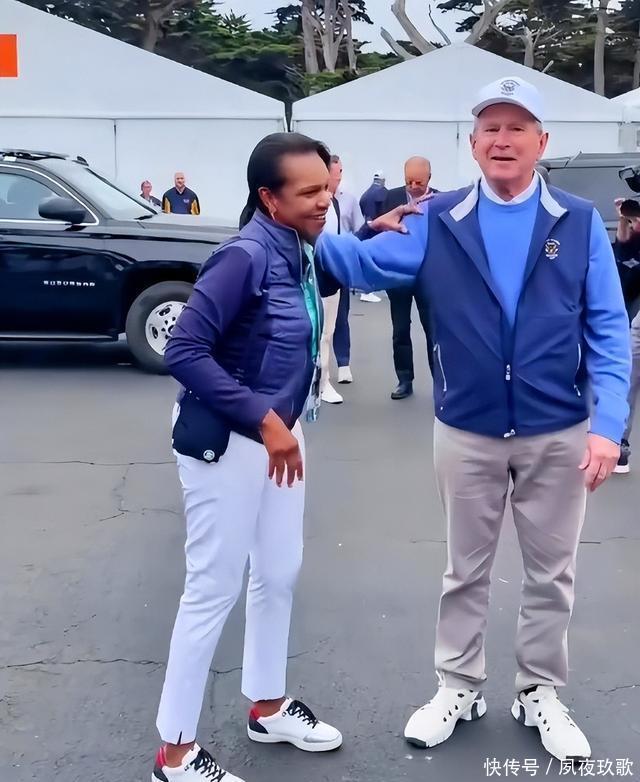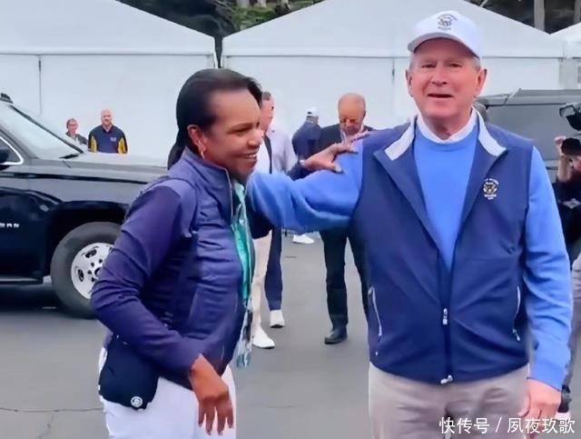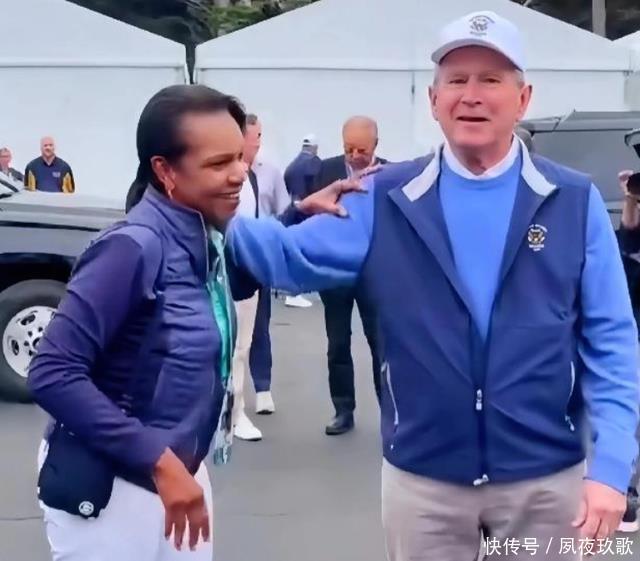 再看赖斯与小布什二人, 如今的重逢,更像是普通的“老友见了老友”, 只不过客套的表相之下,还潜藏着彼此未改的性子。 见面当天,小布什穿得扎眼:宝蓝色T恤外搭一件蓝灰马甲,浅灰色裤子配了双白球鞋,头顶的棒球帽也是白色的,晃得人张不开眼。 看见赖斯的瞬间,他立刻露出了一个“没牙”的微笑, 像个撞见老玩伴的孩子,脚步一颠就凑过去了。